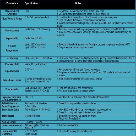 SPECIFICATIONS USCCFM